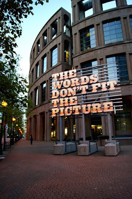Something that I missed while in Vancouver was the three-dimensional art installation in Vancouver's Central Library courtyard.